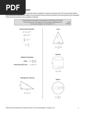 Pssa 8th Grade Formula Sheet Pi Mathematical Concepts